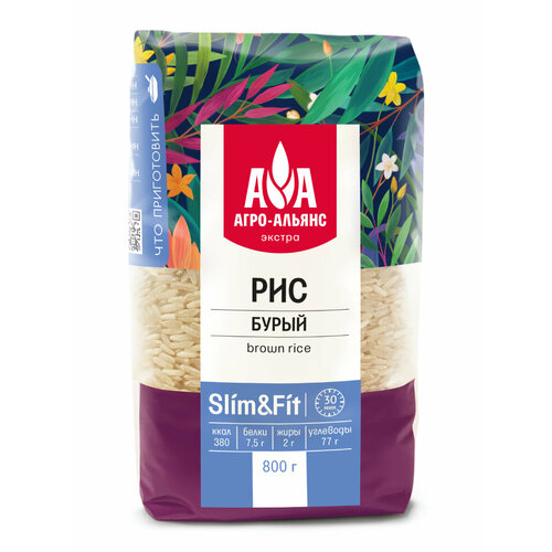Рис бурый агро-альянс Экстра Slim&Fit, нешлифованный, 1-й сорт, 800 г - 5 шт.