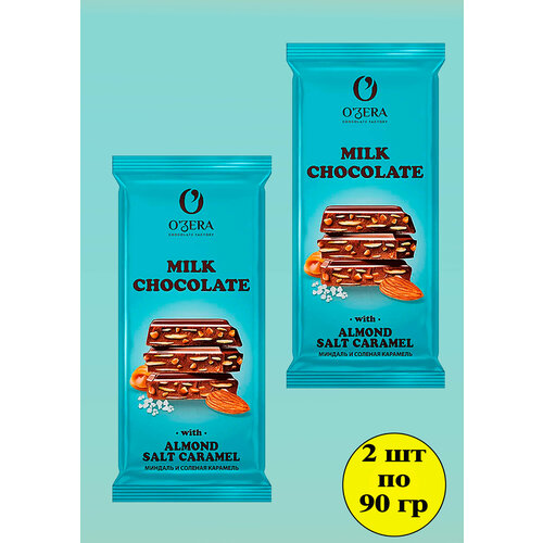 Шоколад Озера молочный с миндалем и соленой карамелью 2 шт по 90 грамм Озерский сувенир