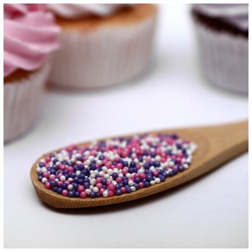 Посыпка кондитерская с мягким центром "Бисер" цветной "розовый, сиреневый, серебро" 50 г