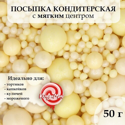 КондиМир Кондитерская посыпка с мягким центром "Бисер": жёлтая, белая, оранжевая, Пасха, 500 г