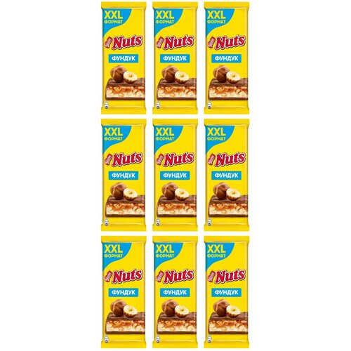 Nuts Молочный шоколад с фундуком, начинка - нуга, карамель, 180 г, 9 шт