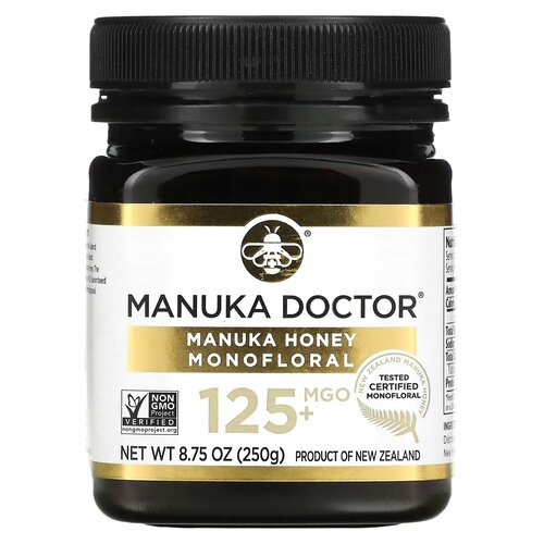 MANUKA DOCTOR Мед Манука монофлорный MGO 125+ натуральный новозеландский сырой, 250 г.