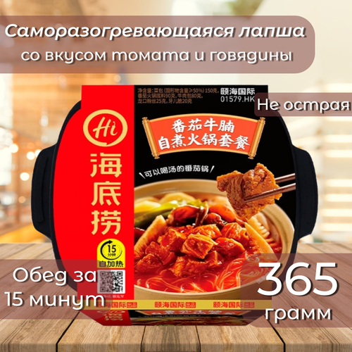 Китайская лапша быстрого приготовления (Саморазогревающаяся) Haidilao HotPot со вкусом говядины и томата, 365 г
