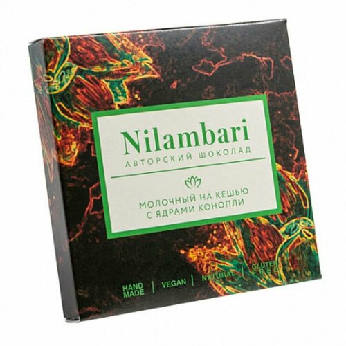Веганский сыроедный шоколад молочный на кешью с ядрами конопли Nilambari, 65 г