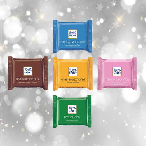 Шоколад порционный Ritter Sport 10 плиток по 16,7 г / Риттер Спорт набор мини шоколадки "Яркая коллекция", 5 вкусов, общий вес 167 г