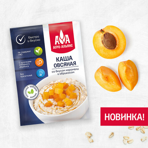Каша овсяная «Агро-Альянс» моментального приготовления со вкусом карамели и абрикосом 40г (25 пакетиков в упаковке)