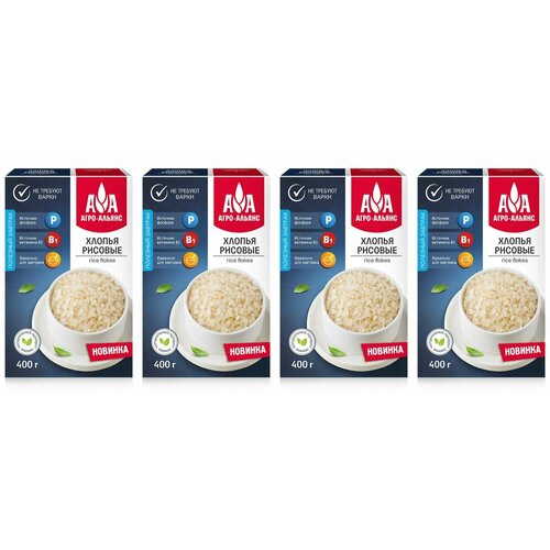 Агро-Альянс Хлопья рисовые, 400 г, 4 уп