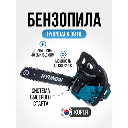 Бензопила цепная Hyundai Х 3916 (1.5 кВт, шина 40см, шаг цепи 0,375 дюйма, 57 звеньев) электроинструмент для дачи и сада, ручная техника