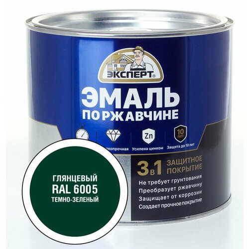 Эксперт Эмаль по ржав. 3в1 глянцевая темно-зеленый RAL 6005 1,8кг