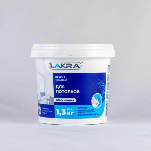 Краска Лакра акриловая для потолков белоснежная 1,3кг