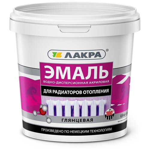 Эмаль Лакра для радиаторов отопления глянцевая, А, глянцевая, глянец, 0.9 кг, 0.9 л