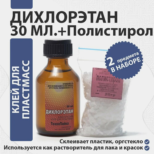Клей для пластмасс и оргстекла Дихлорэтан, 30 мл. + Полистирол 20 гр.
