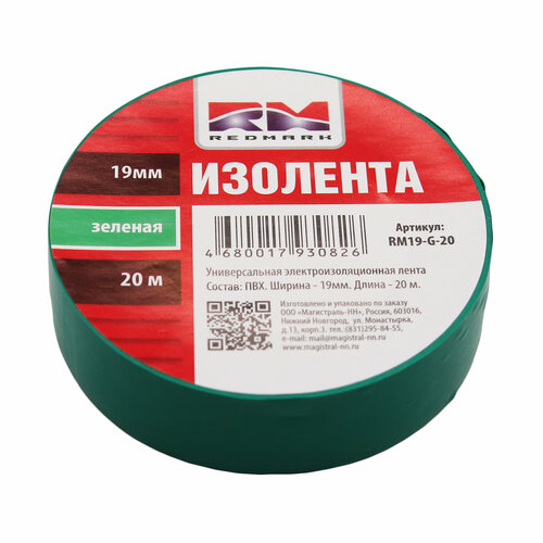 Изолента REDMARK 19 мм х 20 м, цв. RM19G20