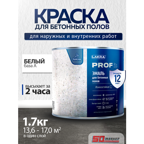 Эмаль для бетонных полов белая матовая 1.7 кг , быстросохнущая , ЛАКРА PROF IT