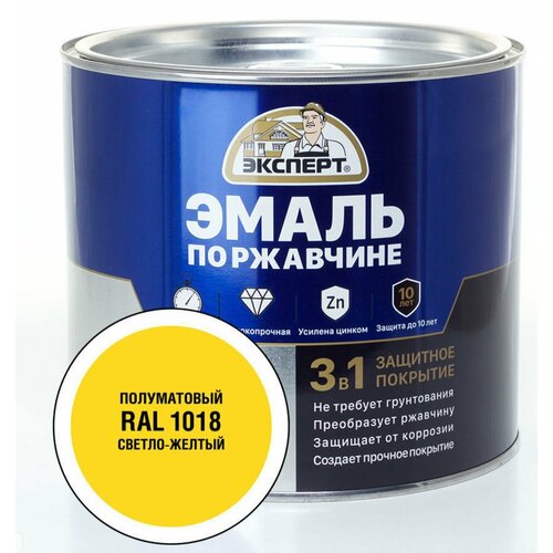 Эксперт Эмаль по ржав. 3в1 полуматовая светло-желтый RAL 1018 (1,8кг)