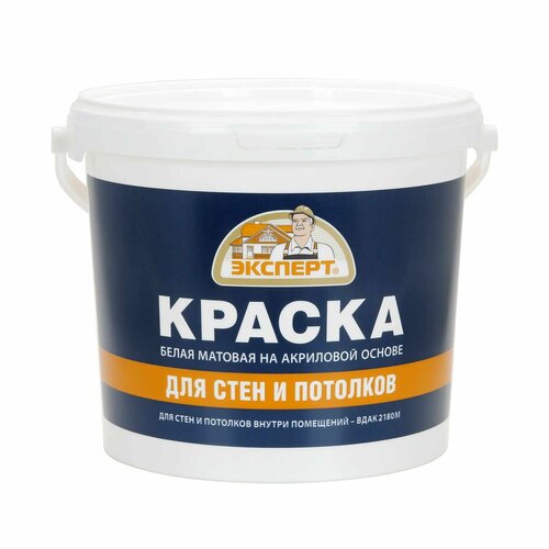 белыйПрименяется для окраски стен и потолков внутри сухих помещений. Идеальна для бетонных, зашпатлеванных и оклеенных обоями стен. Обладает высокой степенью белизны и укрывистости. Хорошая стойкость к истиранию. Очень экономичная в применении. Наносится на бетонные и оштукатуренные поверхности, гипсовые и гипсокартонные плиты, структурные и стеклообои. Расход:1кг на 5-7 кв. м. Расход может изменяться в зависимости от свойств поверхности.подготовка поверхности: поверхности:Поверхность должна быть прочной, чистой и сухой. Непрочные старые покрытия необходимо удалить. Окрашиваемые поверхности обработать акриловой грунтовкой эксперт.способ нанесения: нанесения:Перед нанесением тщательно перемешать. Наносить кистью, валиком или краскораспылителем. Время высыхания «на отлип» при температуре +20°C и относительной влажности воздуха 65% не более 1 часа. Второй слой рекомендуется наносить не ранее, чем через 6 часов. Температура при проведении работ и следующие 24 часа не должна опускаться ниже +5°С. Сразу после ра