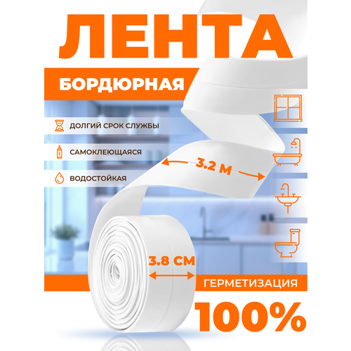 Бордюрная лента самоклеящаяся для ванной и кухни, ширина 3,8 см