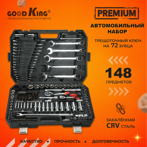 Набор инструментов для автомобиля и дома, трещотка 1/2 1/4, GOODKING M-10148, комбинированные ключи, торцевые головки, кейс