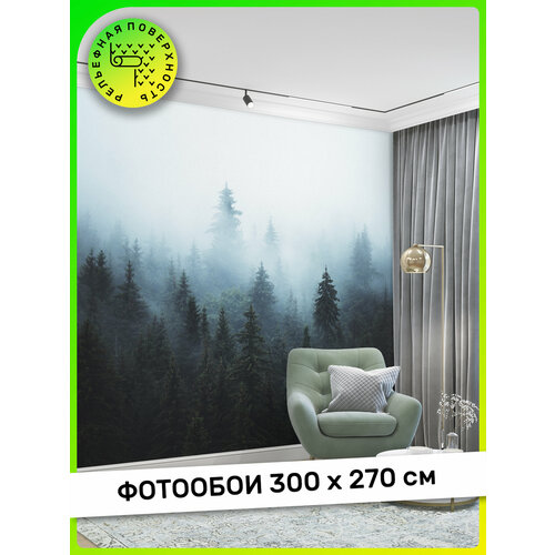 АРТ фотообои / Фотообои, обои Туманный лес, Природа на стену, в зал, гостиную, спальню, на кухню, 300 см x 270 см