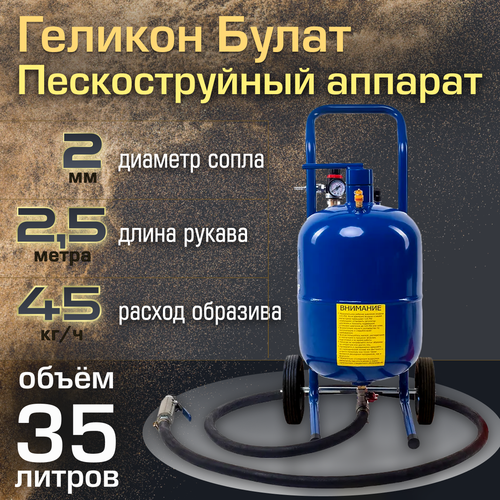 Главная Строительство и ремонт Инструменты Пневмоинструменты Пескоструйный аппарат Геликон "Булат" 40 л синий