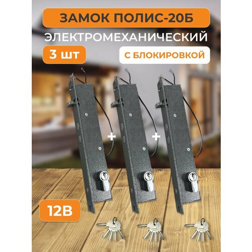 Замок на дверь врезной электромеханический Полис-20Б 3 шт.