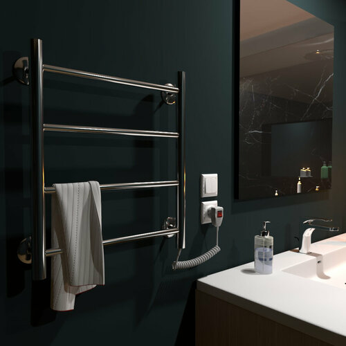 Полотенцесушитель электрический EL-TERM (Эл-Терм) лион 400х700 мм, нержавеющая сталь, гарантия 5 ЛЕТ/ Электрический полотенцесушитель с терморегулятором
