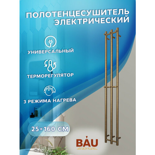 Полотенцесушитель дизайнерский электрический, BAU Stella 25х160, 3 коллектора, 2 крючка, антикварная бронза