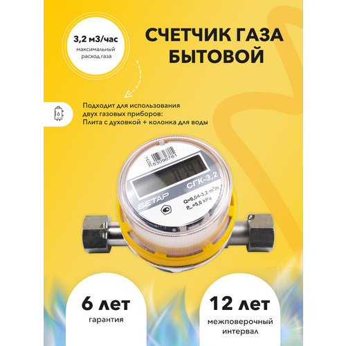 Счетчик газа "Бетар СГК 3.2" с двумя накидными гайками