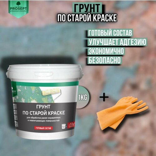 Грунтовка по старой краске Prosept для раннее окрашенных и невпитывающих поверхностей + перчатки