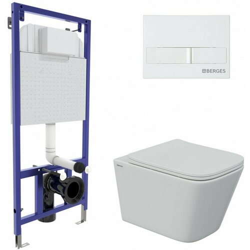 Berges Wasserhaus Комплект BERGES для монтажа подвесного унитаза GAMMA: инсталляция NOVUM525, кнопка S3, унитаз с сиденьем микролифт, быстросъем