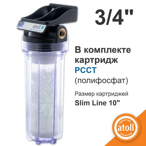 Корпус фильтра атолл Патриот SL10-3/4 прозрачный с картриджем PCCT (полифосфат)