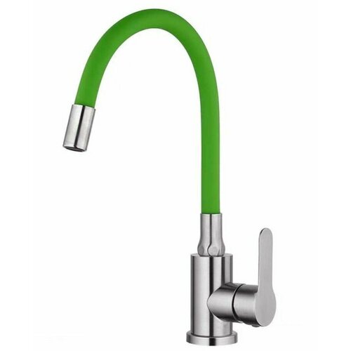 A54101-6 Смеситель Fashun нерж. д/кухни, гибкий. излив 175мм, крепление-гайка, зелёный/сатин