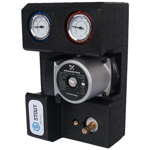 STOUT Насосно-смесительный узел с термостатическим клапаном 20-43°C жидкокристаллическим термометром, с насосом UPSO 25-65, 130 mm
