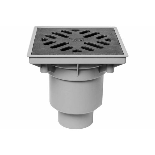 Трап нерегулируемый Т 606 PNsG 260x260 вертикальный выпуск DN 110/160 с корзинкой и незамерзающим сифоном, решетка чугунная, чугунный подрамник
