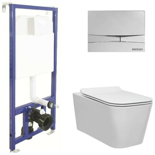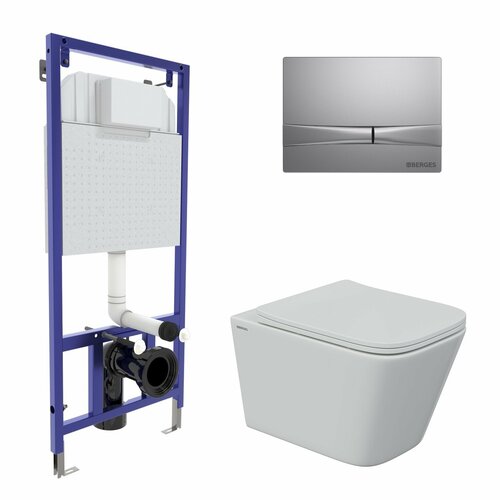 Комплект унитаза с инсталляцией Berges Wasserhaus Floe Rimless 043223 с сиденьем Микролифт и клавишей смыва Хром