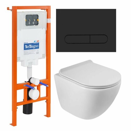 Комплект: Инсталляция для подвесного унитаза BELBAGNO BB001-120 черная кнопка+Унитаз подвесной безободковый с сиденьем BelBagno AMANDA