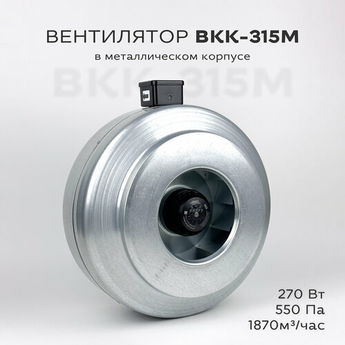 Вентилятор канальный круглый ВКК-315 в металлическом корпусе, 220В, 1870 м3/час, 550 Па, 270 Вт, для круглых воздуховодов диаметром 315 мм, IP 54