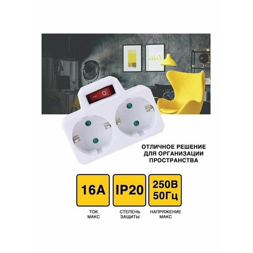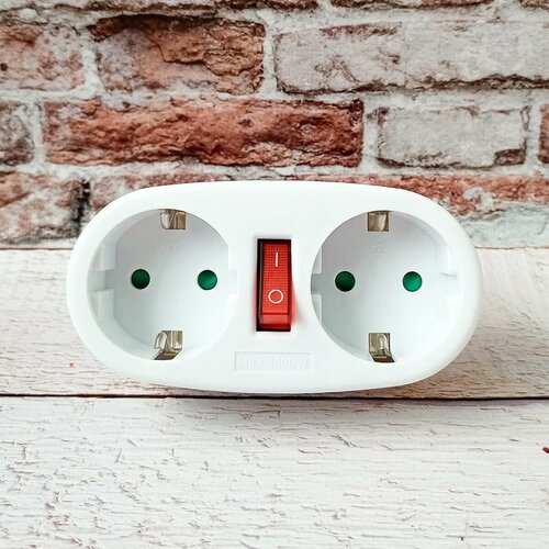 Двойник-адаптер разветвитель электрический с выключателем и подсветкой 2 гнезда