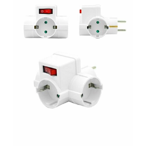 Тройник-адаптер разветвитель электрический с выключателем и подсветкой 3 гнезда