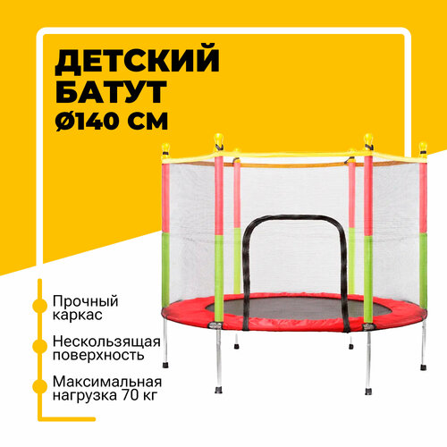 Батут каркасный детский, с защитной сеткой, красный, диаметр 140 см