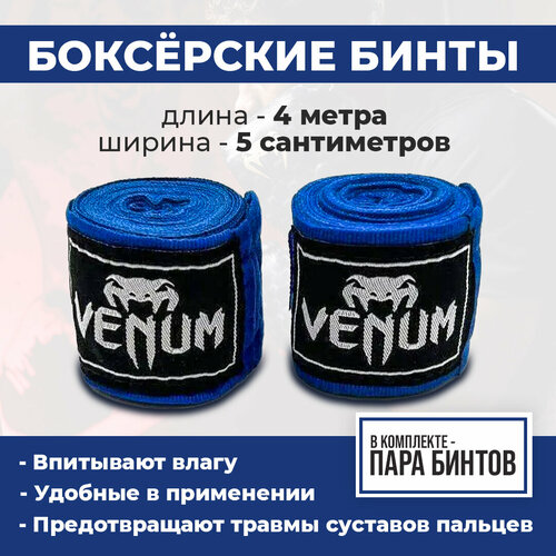 Боксерские бинты Venum Kontact, синие, 4 метра (2 шт.)