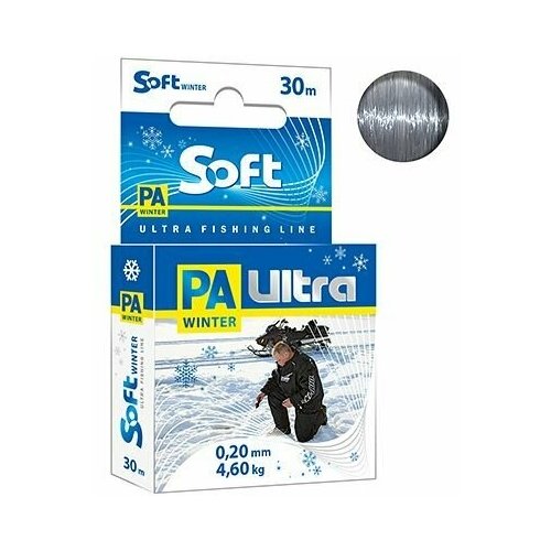 Леска для зимней рыбалки AQUA PA ULTRA SOFT 30m 0,20mm, цвет - дымчато-серый, test - 4,60kg ( 1 штука)