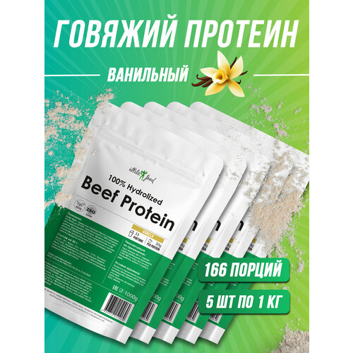 Протеин говяжий, животный белок Atletic Food 100% Hydrolized Beef Protein - 5000 г (5х1000 г), ваниль
