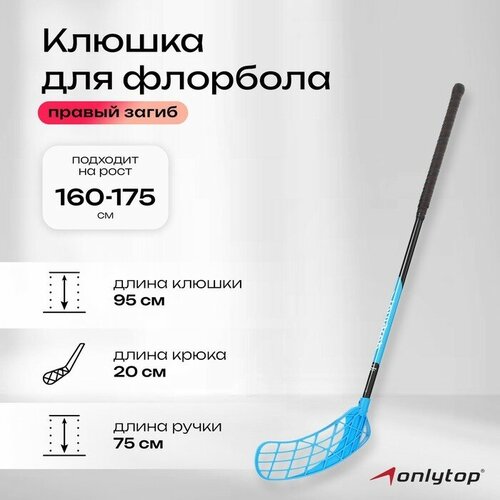 Клюшка для флорбола ONLYTOP, взрослая, правый хват, 95 см, жесткость 20 кг/мм, цвета микс
