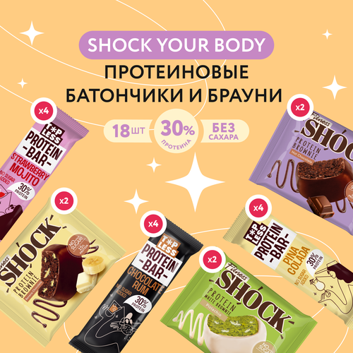 Ассорти Shock your body Fitness SHOCK протеиновые батончики и брауни 18 шт