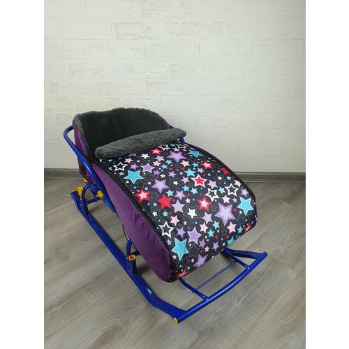 Матрасик для санок меховой 3 в 1 Звездное небо бок фиолетовый мех черный