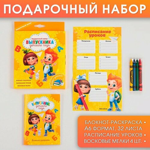 Подарочный канцелярский набор ArtFox "Выпускника детского сада", блокнот-раскраска, расписание уроков, мелки (ПЛ10-01МВ)