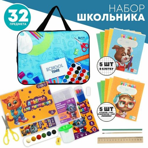 Набор первоклассника ArtFox STUDY "Школьная пора", унив, 32 предмета, в папке