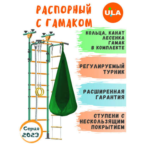 Шведская стенка Пристенный с гамаком, цвет Пастель / зеленый