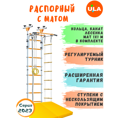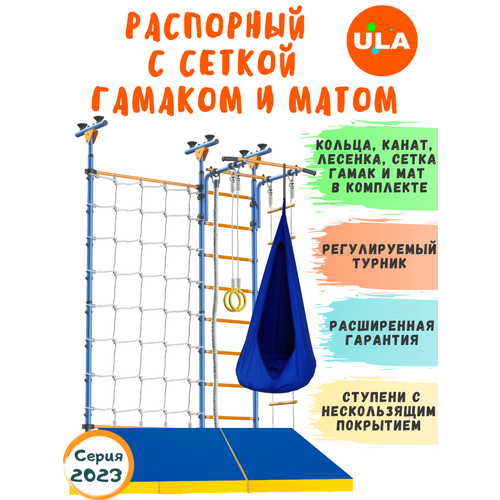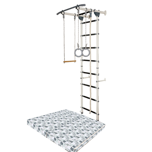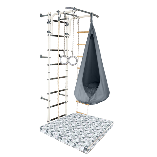 Комплектация:- шведская стенка- регулируемый турник- кольца гимнастические- канат х/б- веревочная лестница- мат гимнастический 1х1 м, толщиной 10 см, цвет серый- новинка! Гамак в новом насыщенном цвете понравится